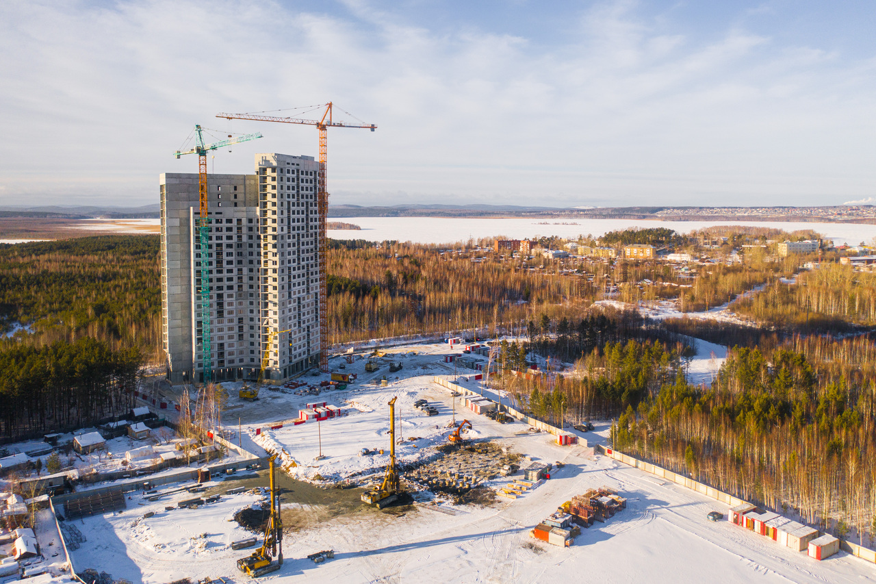 В конце сентября специалисты «ЛСР. Строительство – Урал» приступили к монтажу коробки первого дома жилого комплекса «Зеленый остров» с использованием уже зарекомендовавшей себя сборной технологии домостроения. Все изделия для стен и плит перекрытий были заранее изготовлены на заводе ЖБИ и отправлены на стройплощадку с заданной проектной прочностью. Строителям оставалось только установить и сварить конструкции между собой. Поэтому к середине февраля все 25 этажей новостройки уже были готовы.