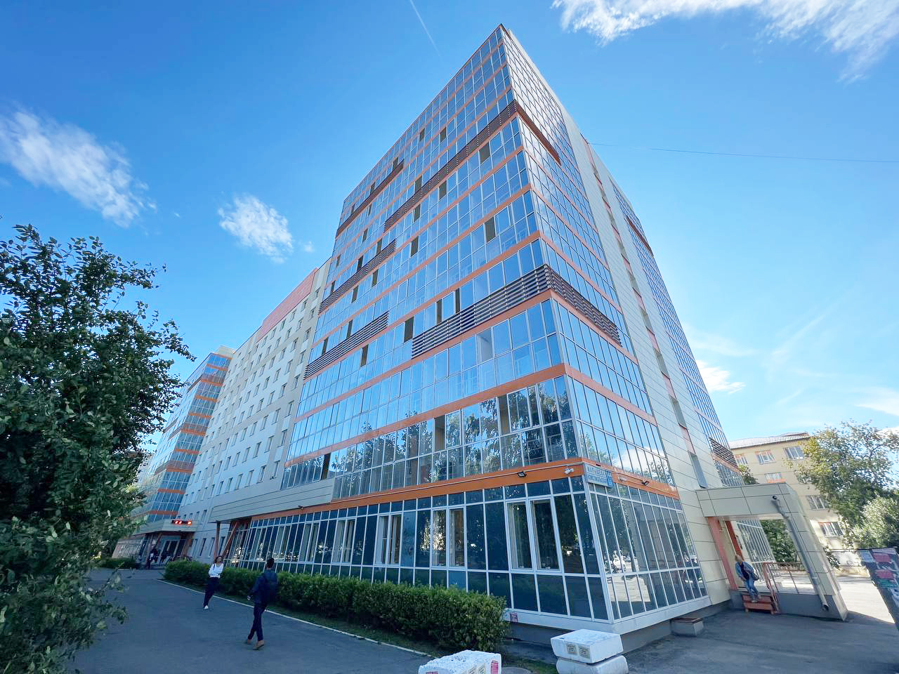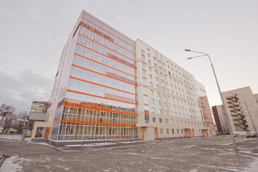 Объем жилых помещений составляет 6,2 тыс. кв. м – более 300 комнат площадью от 15 до 21 кв. м. Объект возведен по современной технологии индустриального домостроения с применением энергоэффективной «бесшовной» технологии отделки фасадов, позволяющей до 30% уменьшить теплопотери внешнего контура здания. Генеральным подрядчиком, разработчиком проекта и поставщиком железобетонных изделий для строительства выступила компания «ЛСР. Строительство – Урал».