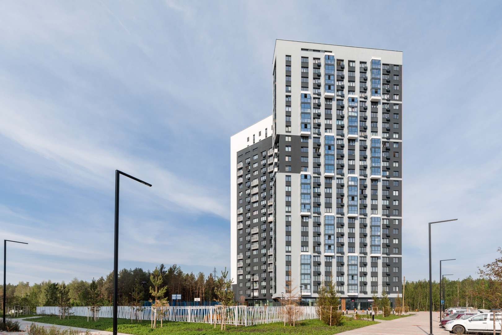 Дома комплекса возводятся с применением сборной технологии домостроения. При этом их фасады – многогранные и объемные за счет различной комбинаторики оконных проемов, разновысоких завершений домов, криволинейной конфигурации секций и французских балконов